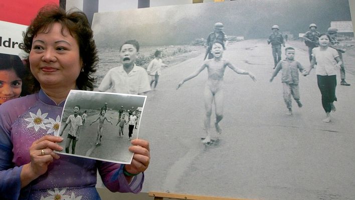 Devítiletou Kim zvěčnil 8. června 1972 na předměstí Saigonu válečný fotograf Nick Ut, jak nahá s rukama popálenýma po náletu, který síly tehdejšího Jižního Vietnamu v místě podnikly omylem, běží po cestě a na muže s fotoaparátem křičí. „Pálí to, pálí to,“ křičela podle Uta dívka, zatímco jí kůže odpadávala od těla.