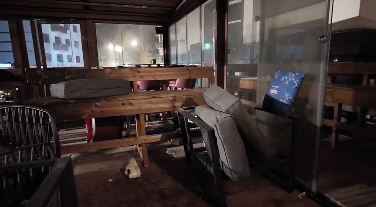Interiér baru, kde hořelo