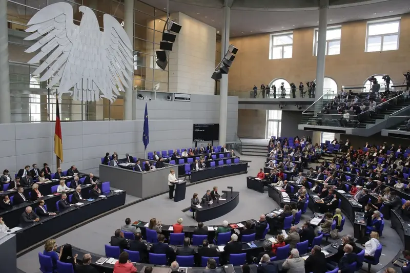 Německá kancléřka Angela Merkelová na plénu Bundestagu