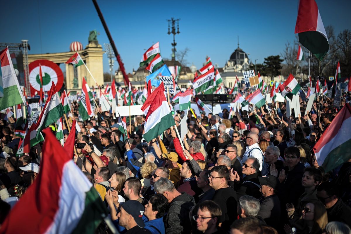 Magyar uvedl, že Národní pochod a dubnové volby budou koncem Orbánova režimu. „Letošní 15. březen bude dnem znovuzrození svobodného Maďarska,“ řekl lídr opozice. „Naše vlast je součástí Západu, evropského společenství a NATO,“ zdůraznil Magyar.