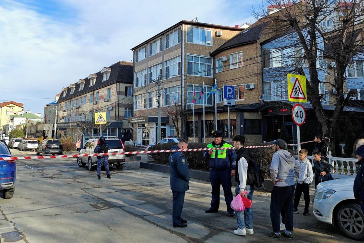 Policie 11. února 2026 zasahuje po střelbě ve vestibulu Anapské průmyslové školy v ruském v Krasnodarském kraji.