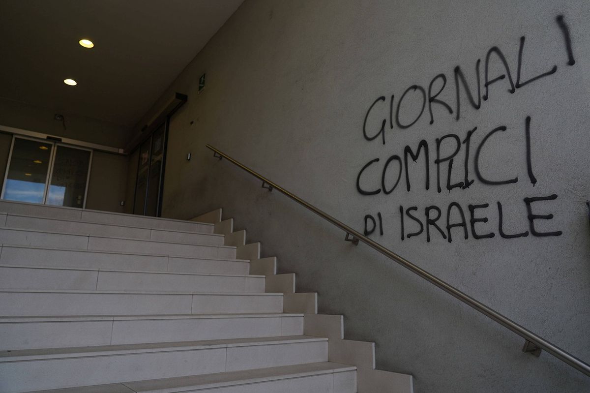 Jeden z nasprejovaných nápisů na schodišti de redakce italského deníku La Stampa obviňoval novináře, že jsou komplici Izraele