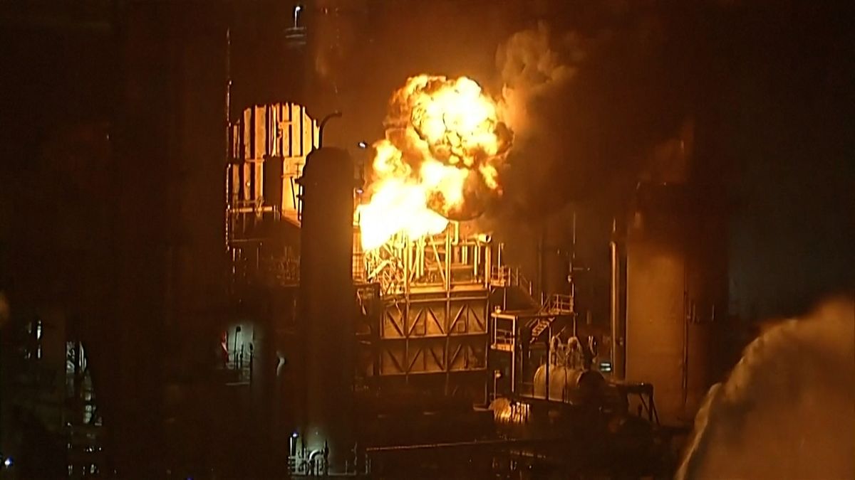 Videa pořízená v době výbuchu kolem 21:30 (6:30 SELČ) ukazují mohutný výbuch a následný požár. Během následující hodiny byly plameny z velké části uhašeny.