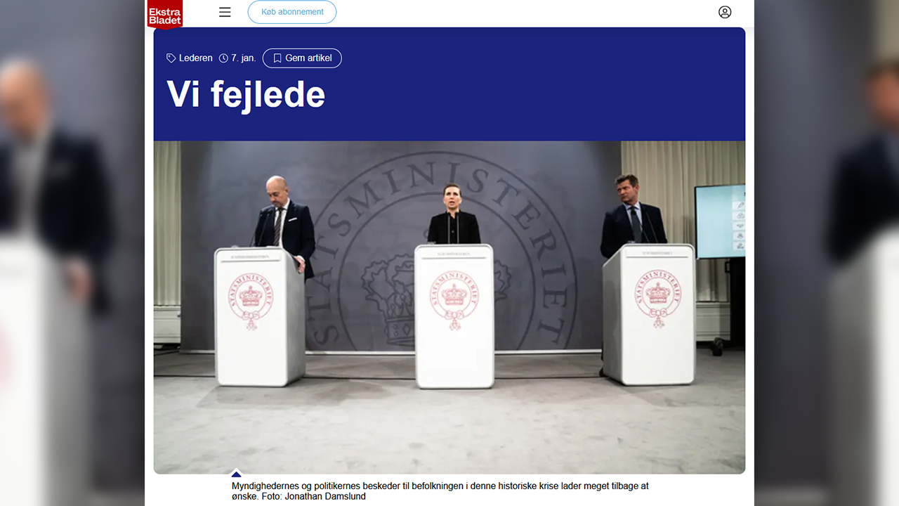 „Téměř dva roky nás – média i veřejnost – skoro až hypnotizují každodenní data úřadů o koronaviru,” stojí v úvodu článku. „Neustálá duševní pohotovost se podepsala na nás všech. Proto musíme i my, novináři, zhodnotit své vlastní úsilí. A selhali jsme,” stojí dále v textu.