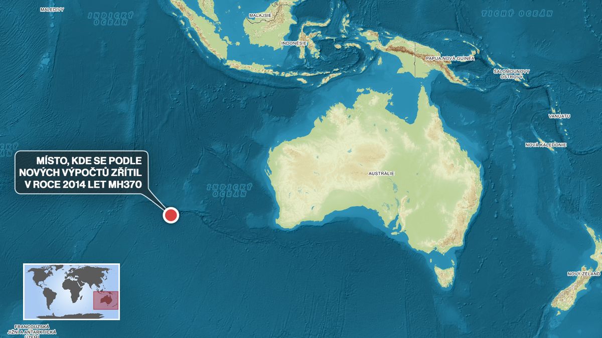 Místo, kde se podle výpočtů z roku 2022 zřítil v roce 2014 let MH370