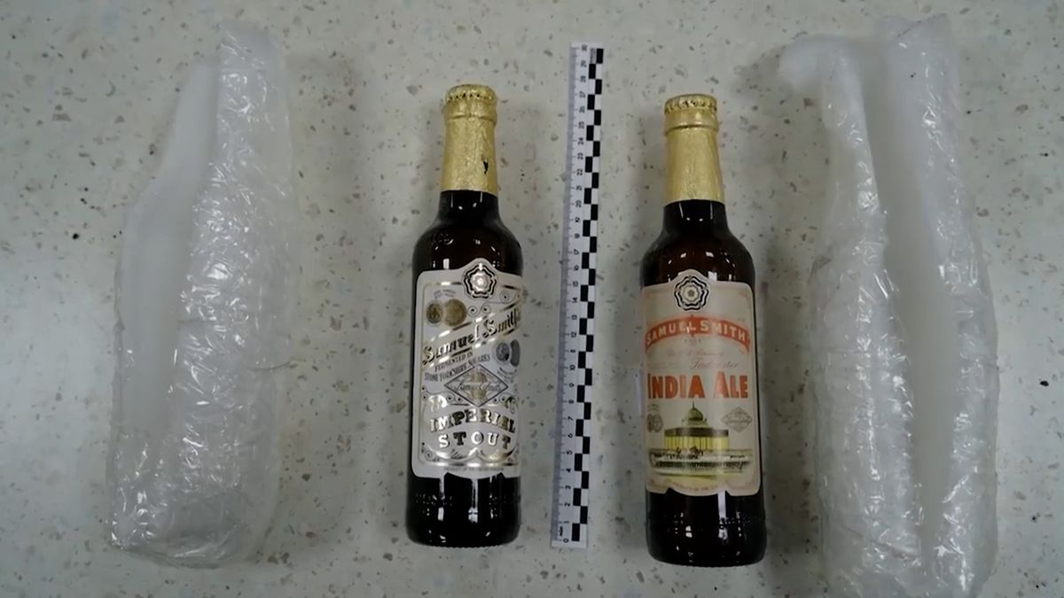Lahve s pivem s nervovým jedem, jimiž údajně chtěl ukrajinský agent otrávit ruského důstojníka
