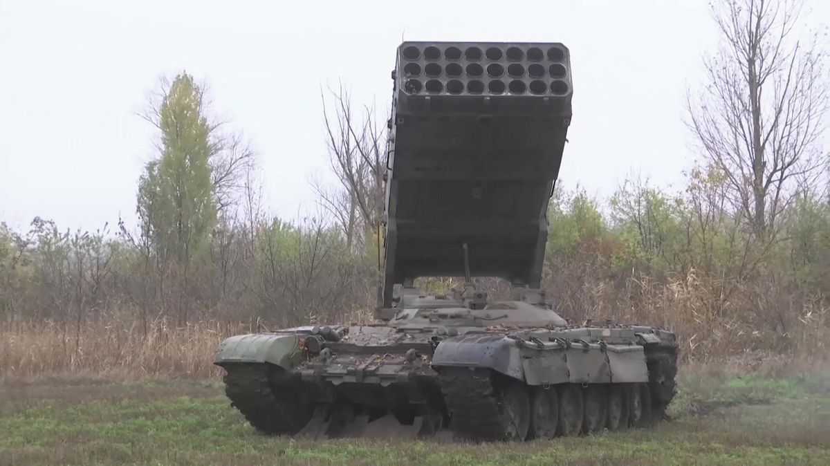 Podle webu Kyiv Post záběry, které jednotka Bulava zveřejnila v pondělí, ukazují první potvrzené zničení termobarického systému TOS-1A na ruském území.