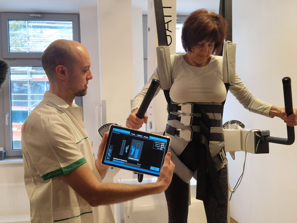 S tím souhlasí i Milena Žabenská z Křenovic u Brna, která má s přístrojem zkušenosti. „Nefungují mi moc nohy. Ta pravá je horší. Tady mě to nadlehčuje, vede mi to nohy, takže mám stabilitu. Je to skvělá chůze, užívám si to,“ řekla novinářům Žabenská, která bojuje s roztroušenou sklerózou.