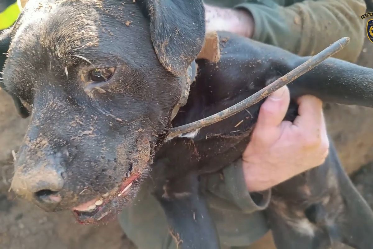Tři hodiny dolovali psa z jezevčí nory na Plzeňsku. Hasiči ukázali záběry