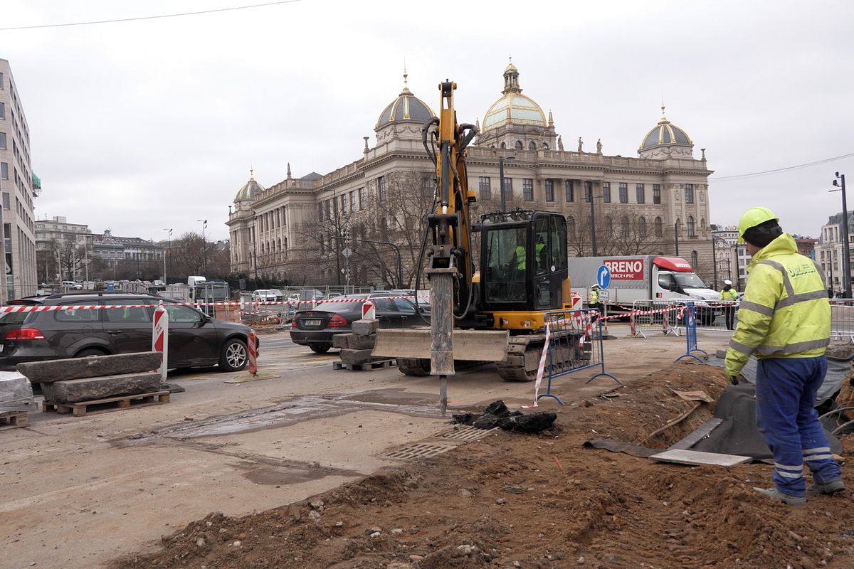 Stavba tramvajové trati u Muzea postoupila do další fáze. Dolní část Vinohradské čeká letos řada omezení i pro řidiče