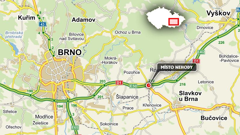 "Podle prvotních informací pravděpodobný viník nehody pracoval s navigací," řekl mluvčí policie Pavel Šváb a apeloval na řidiče, aby se plně věnovali řízení.