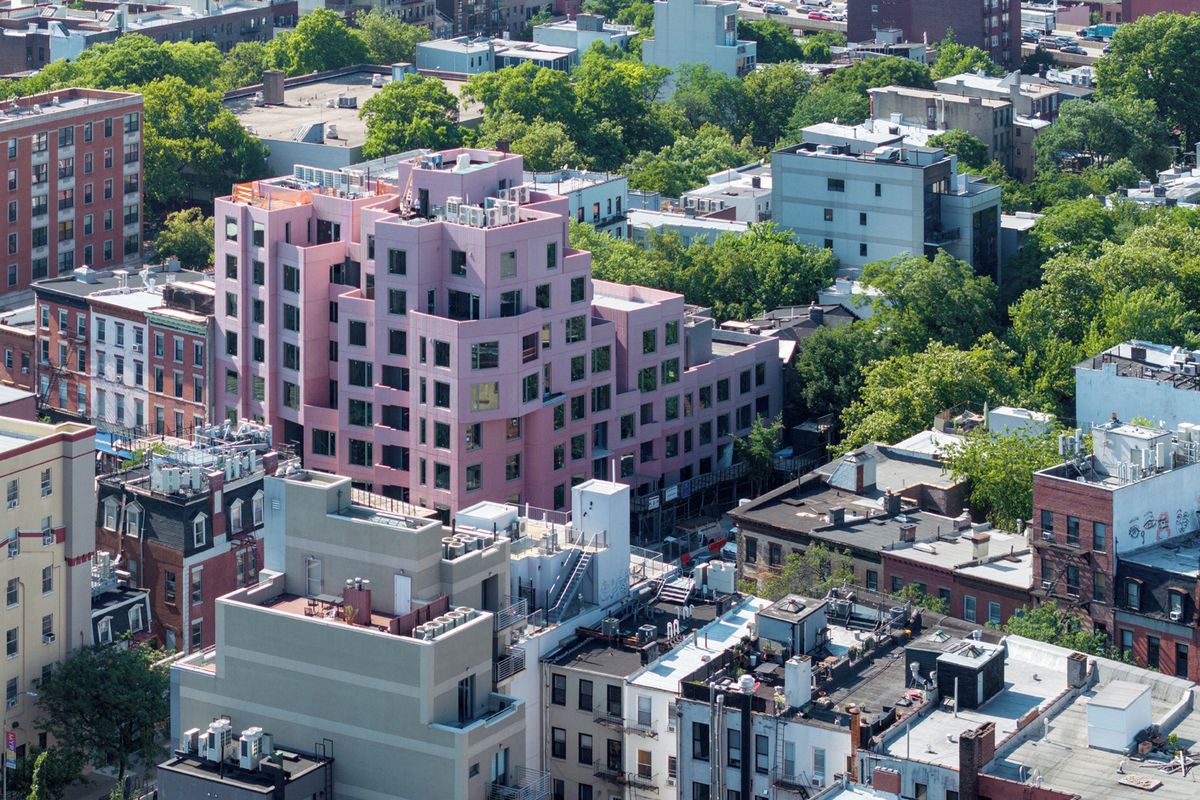 Paneláky jsou pořád v kursu. Dokazuje to i tento zbrusu nový růžový fešák v New Yorku