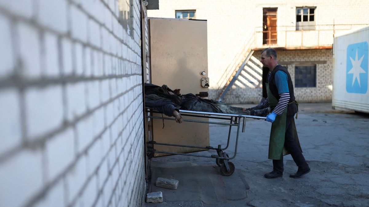 Рабочий перевозит тело в морг в Николаеве
