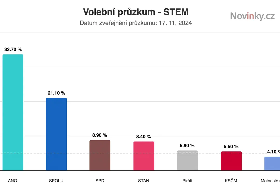 Průzkum STEM: Komunisté nad pěti procenty, ANO dominuje