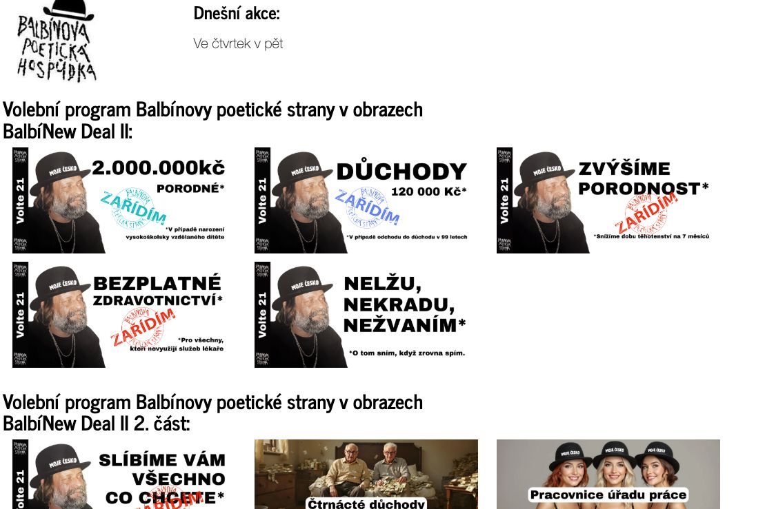 České parlamentní volby v Koňské demokratické republice suverénně ovládla Balbínova poetická strana. Získala dohromady dva hlasy, všichni ostatní ostrouhali...