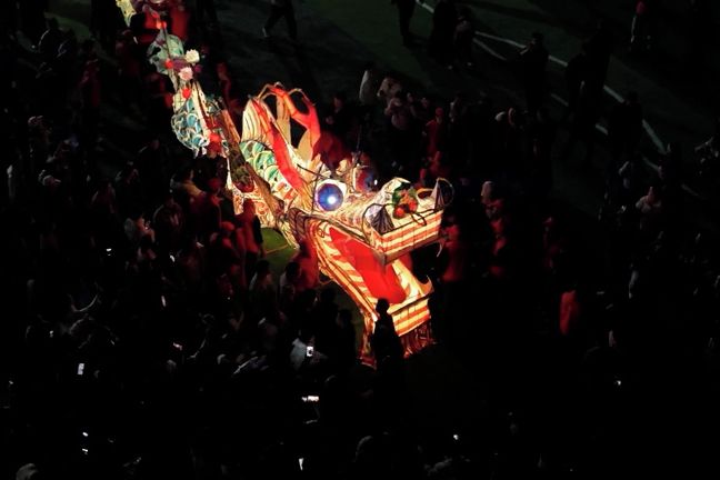 Na oslavách čínského nového roku tančil 200metrový svítící drak