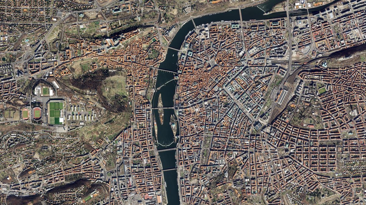 Co je na Praze nejvýraznější při pohledu z vesmíru? Vltava, Strahovský stadion nebo Hlavní nádraží? Evropská kosmická agentura zveřejnila snímek centra české...