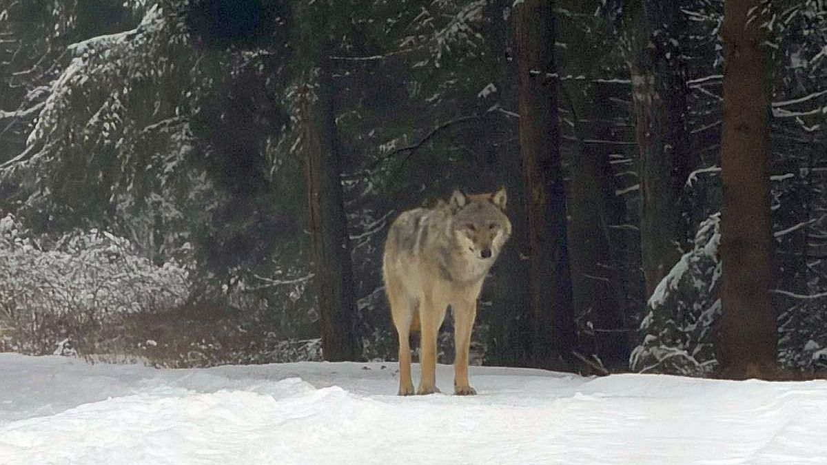 U odpočívadla Devět křížů na Brněnsku u dálnice D1 se potuluje mladý vlk. Zvíře není nebezpečné, od lidí si drží odstup. Zřejmě hledá místo, kudy by se dostalo...