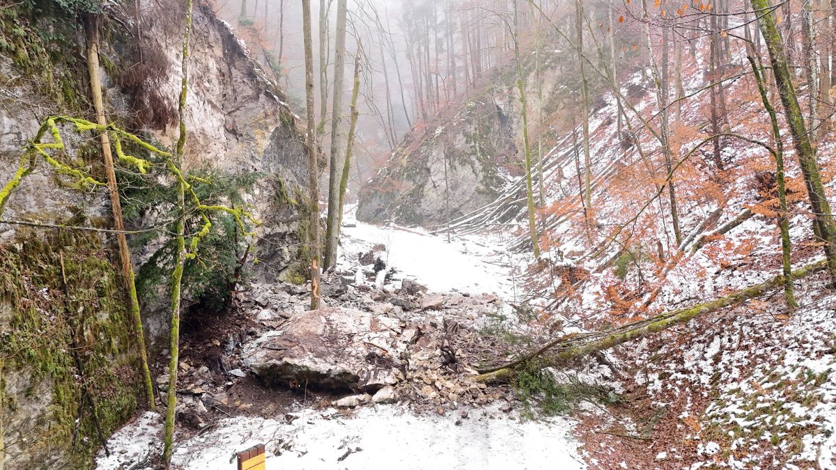 Stezka v Moravském krasu může být po sesuvu skály uzavřena až dva měsíce. Lidé zákaz vstupu ignorují