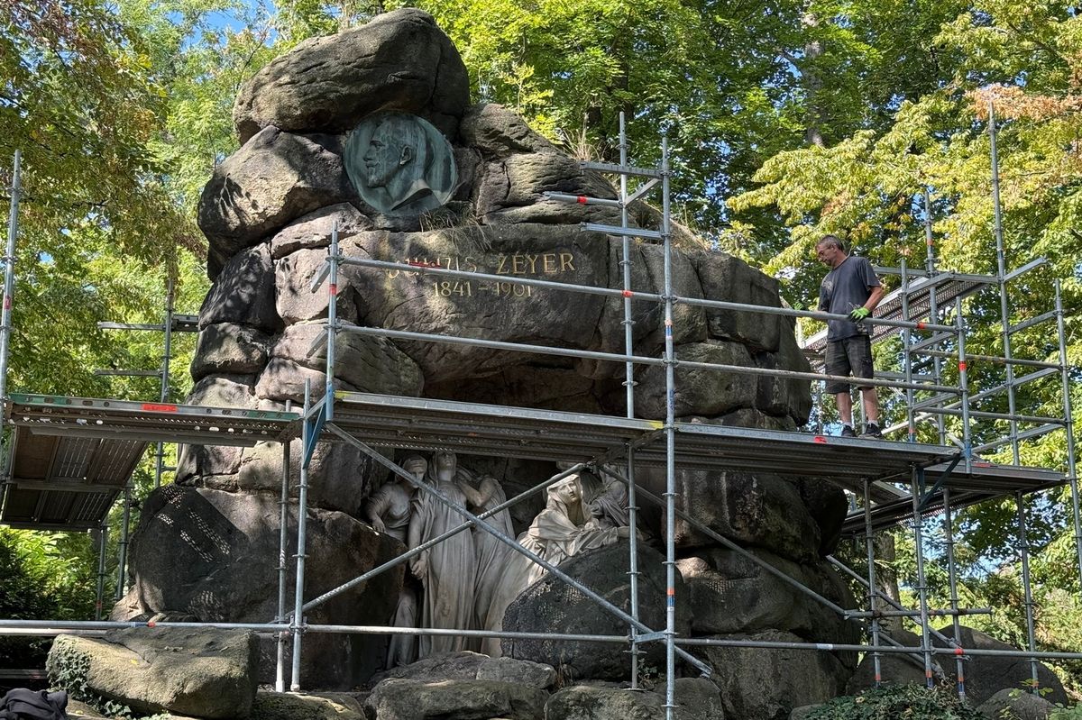 Umělá skála s jeskyní u Pražského hradu je pod lešením, Zeyerův pomník se dočkal opravy