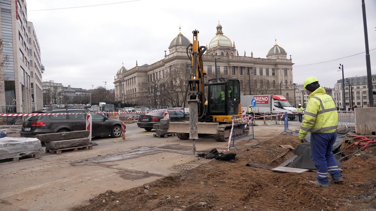 Stavba tramvajové trati u Muzea postoupila do další fáze. Dolní část Vinohradské čeká letos řada omezení i pro řidiče