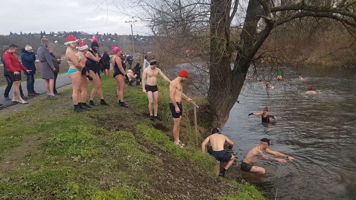 Štědrodenní otužilci v řece Jihlava si zvýšili plaváním chuť na sváteční večeři