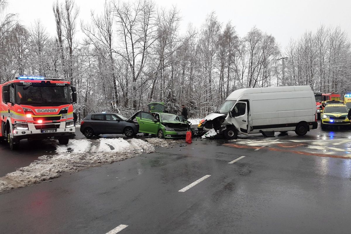 Řidič se při hromadné nehodě na Sokolovsku vážně zranil