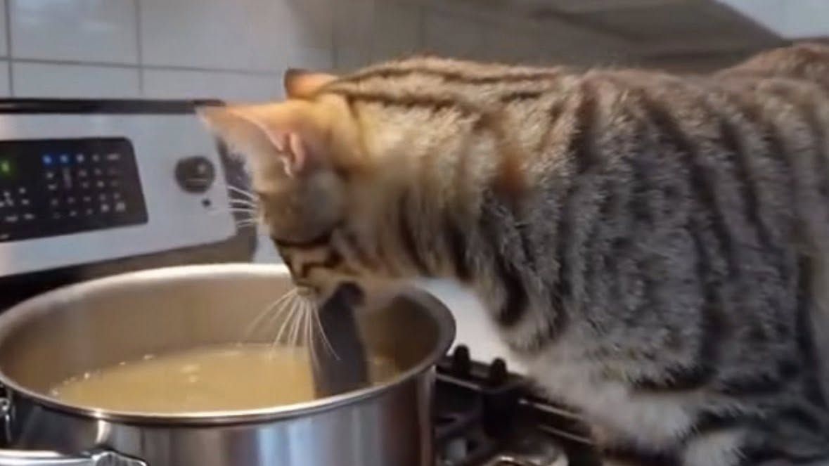 Ať to má šmak. Kočka si do polévky na sporáku přinesla vlastní myš