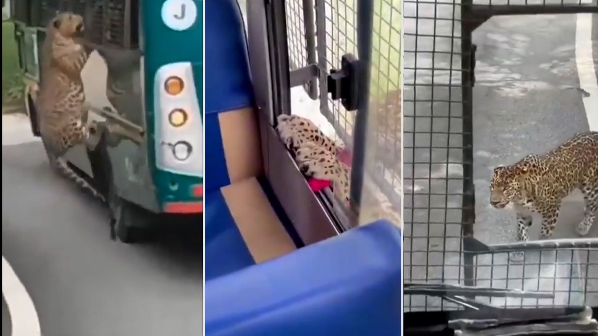 Zvědavý leopard vyskočil během safari na autobus a dral se za lidmi. Vypukla panika