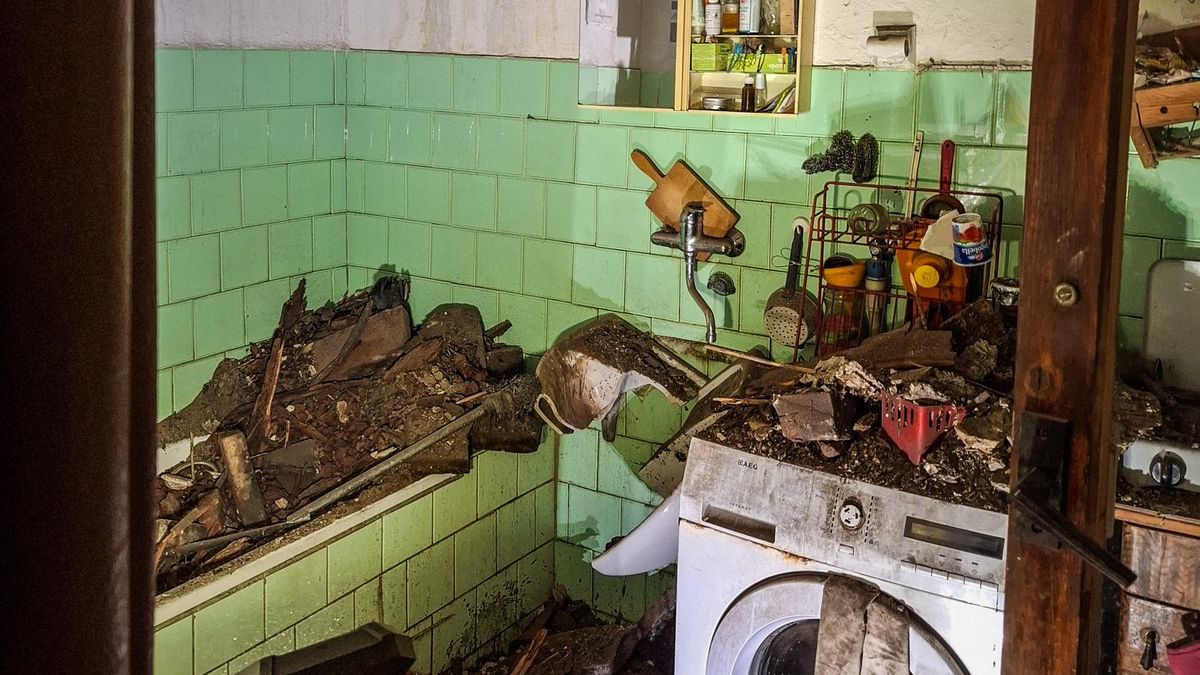 V koupelně bytu v centru Olomouce se zřítil strop