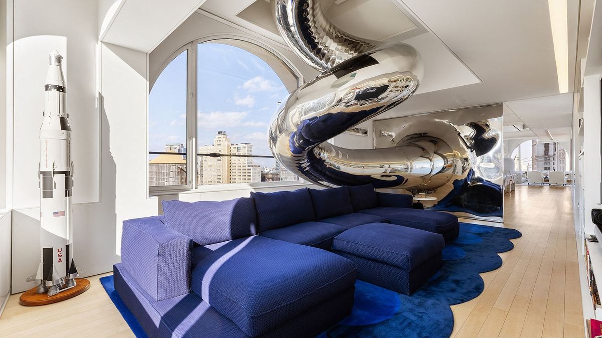 Toto není apríl. V luxusním newyorském bytě mají zrcadlový tobogán v obýváku