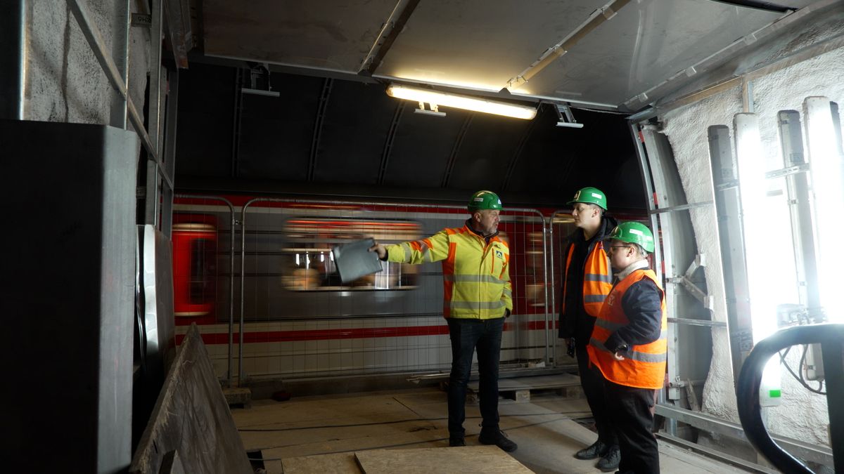Na stanici pražského metra Českomoravská se pracuje ve dne i v noci. Dělníci dokončují obklady, podlahy i rozvody, v kolejišti se instaluje dvojitá konstrukce...