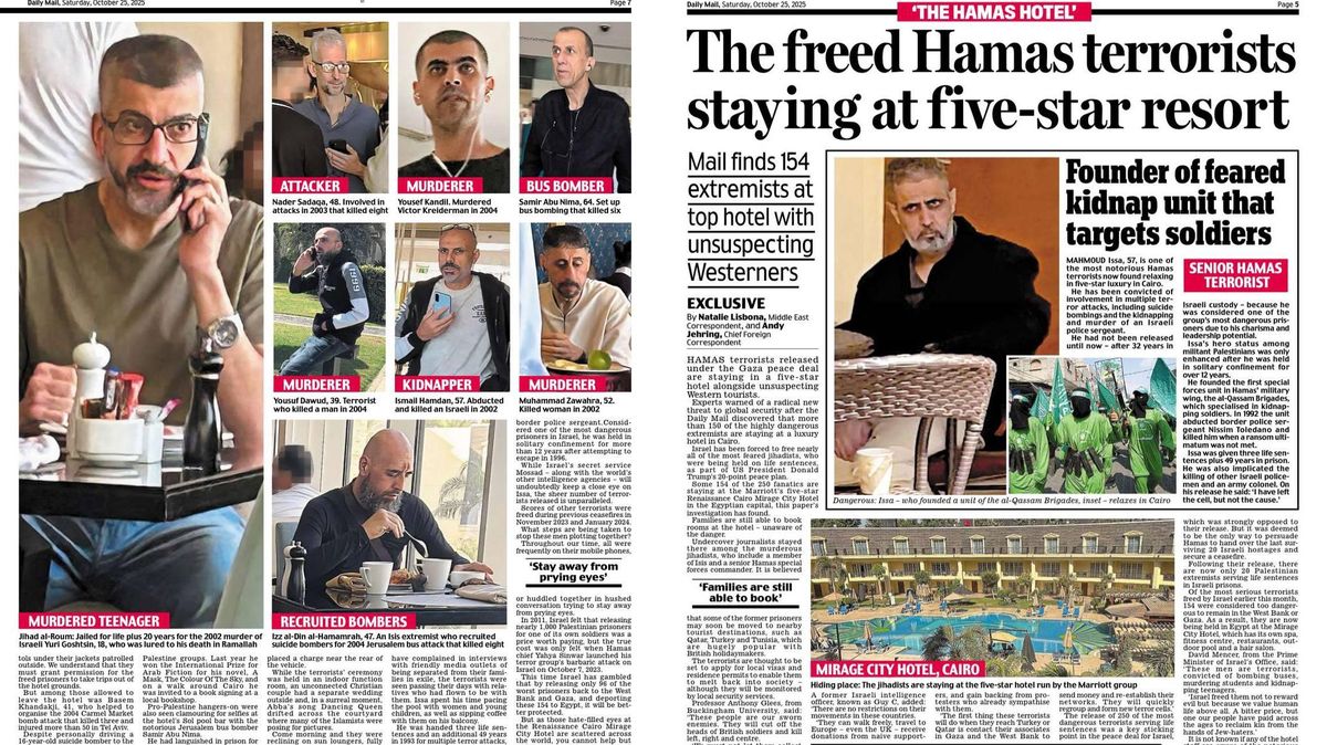 Vítejte v hotelu Hamás: 150 propuštěných teroristů bydlí v pětihvězdičkovém resortu v Káhiře