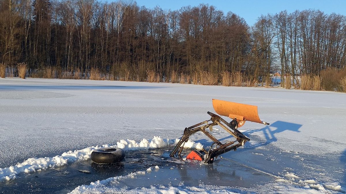 Pod traktorem se na rybníku na Rychnovsku propadl led. Zmizel pod hladinou