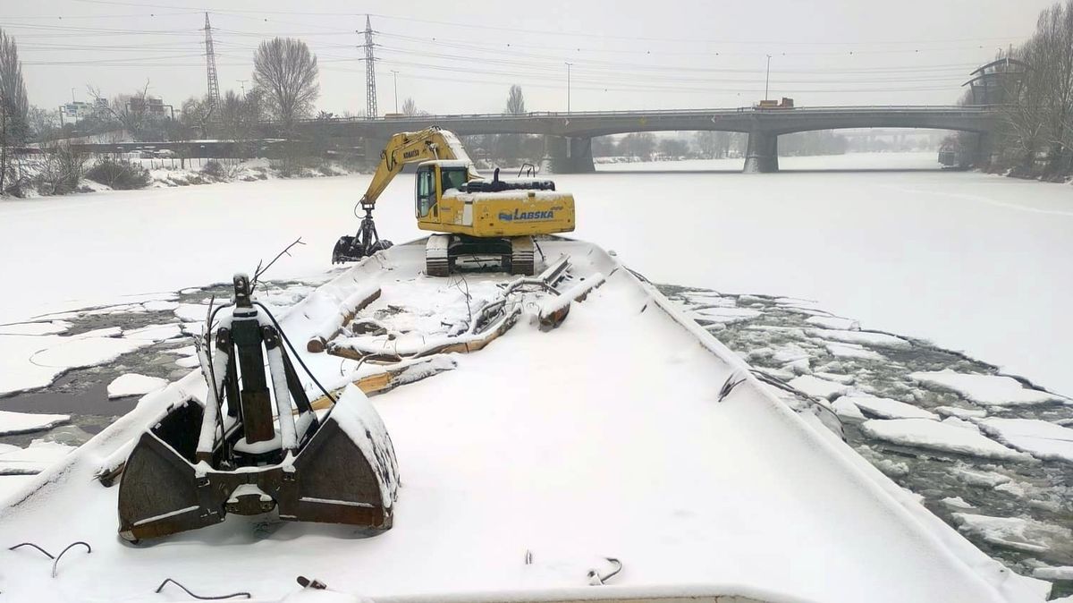 Plovoucí bagry a remorkéry začaly na řece Berounce poblíž Prahy u soutoku s Vltavou prorážet ledové kry. Správci z Povodí Vltavy narušují zmrzlé překážky...