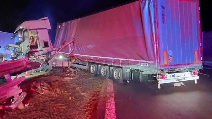 Nehody v noci zablokovaly dálnici D1, kamion prorazil svodidla