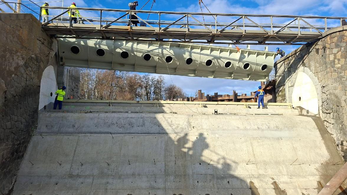 Jeřáb dopravil na jez v Rajhradě čtrnáctitunový kolos, Celá rekonstrukce vyjde na 226 milionů
