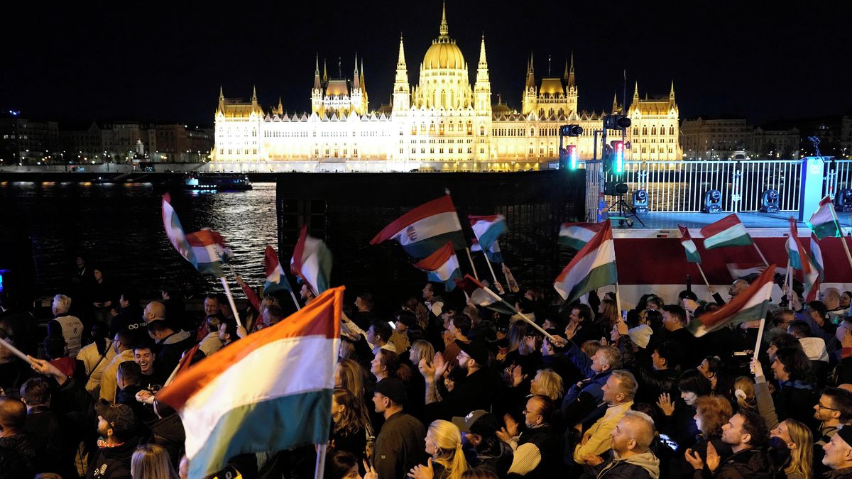 Příznivci opozice slaví vítězství na dunajském nábřeží v Budapešti