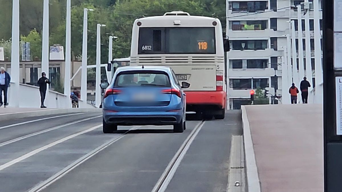 Auta na Dvorecký most nesmí, ale objevují se na něm, což se lidem na zastávkách hromadné dopravy nelíbí. Rychlou jízdu BMW hned druhý den po otevření mostu...