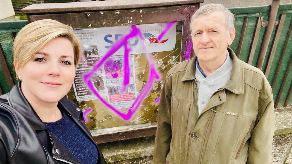 Na vývěsku SPD v Jindřichově Hradci zaútočil už podruhé vandal sprejem a kladivem