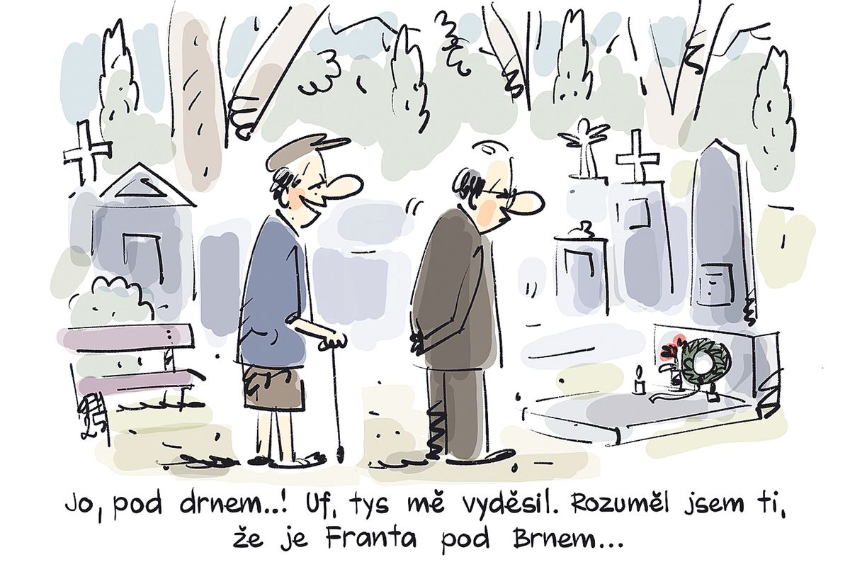Jo, pod drnem..! Uf, tys mě vyděsil. Rozuměl jsem ti, že je Franta pod Brnem…