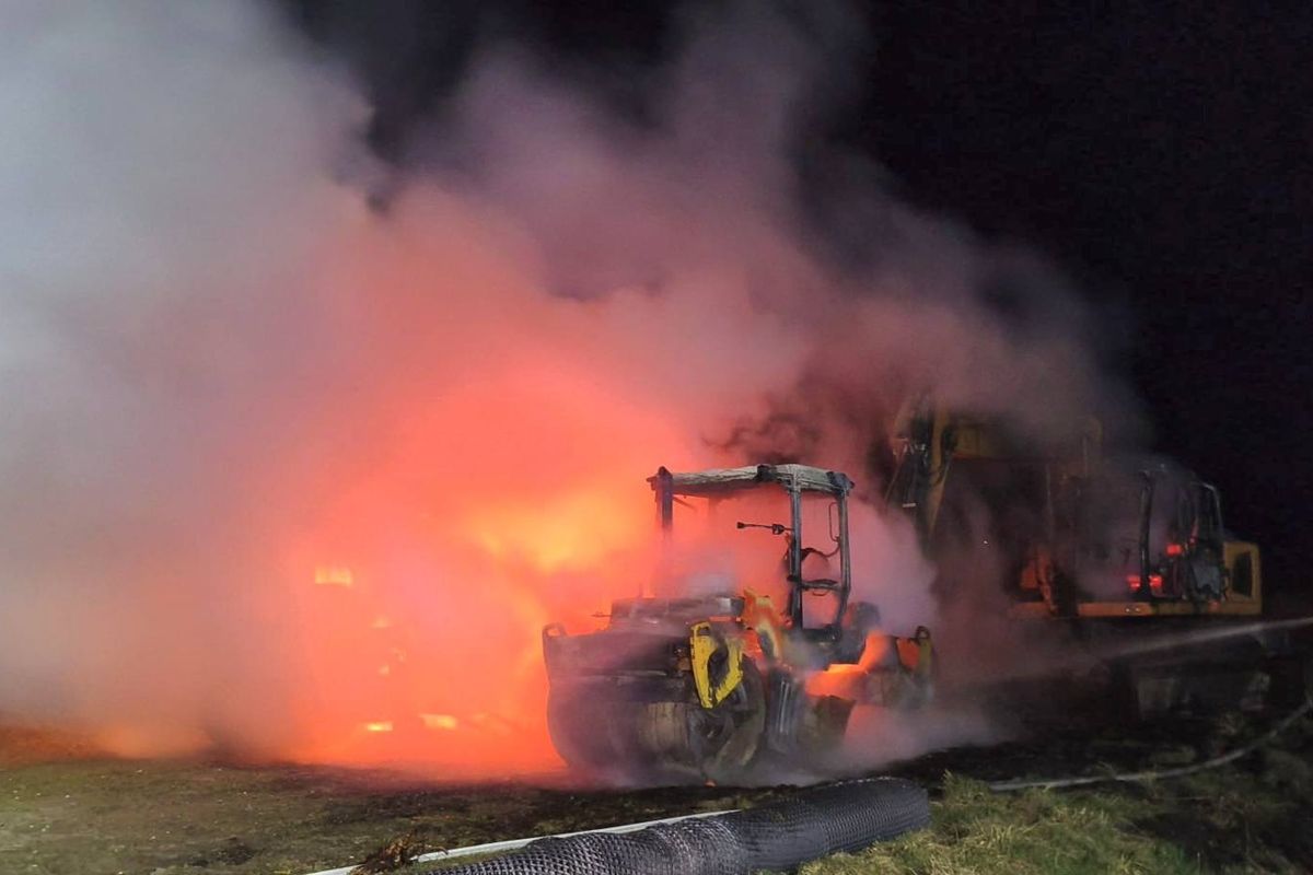 Požár na severu Polska u obce Slajszewo v neděli večer zničil pět strojů, které stavěly silnici nedaleko místa budoucí první polské jaderné elektrárny...