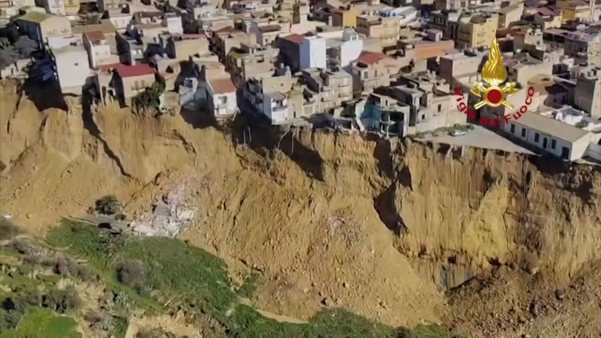 Letecké záběry ukazují masivní sesuv na Sicílii