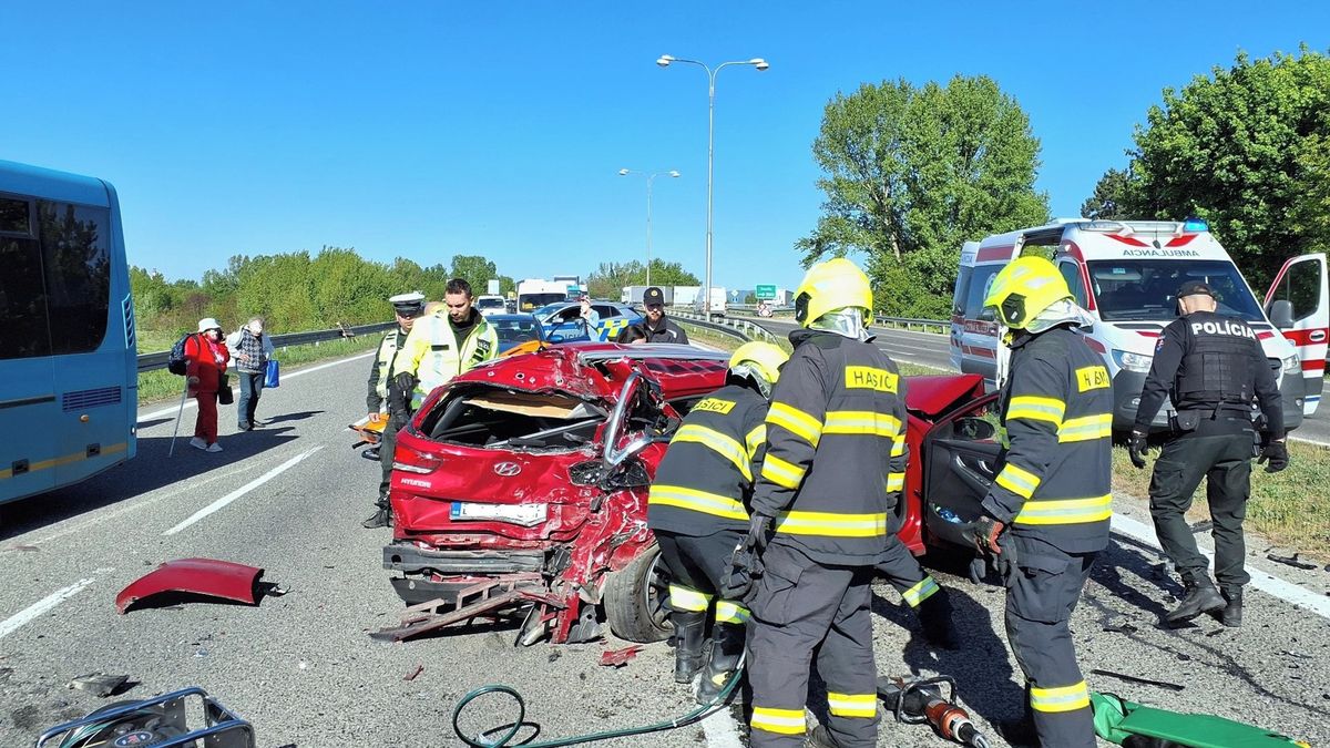 Sedm zraněných si vyžádala havárie tří osobních vozů a autobusu na Slovensku