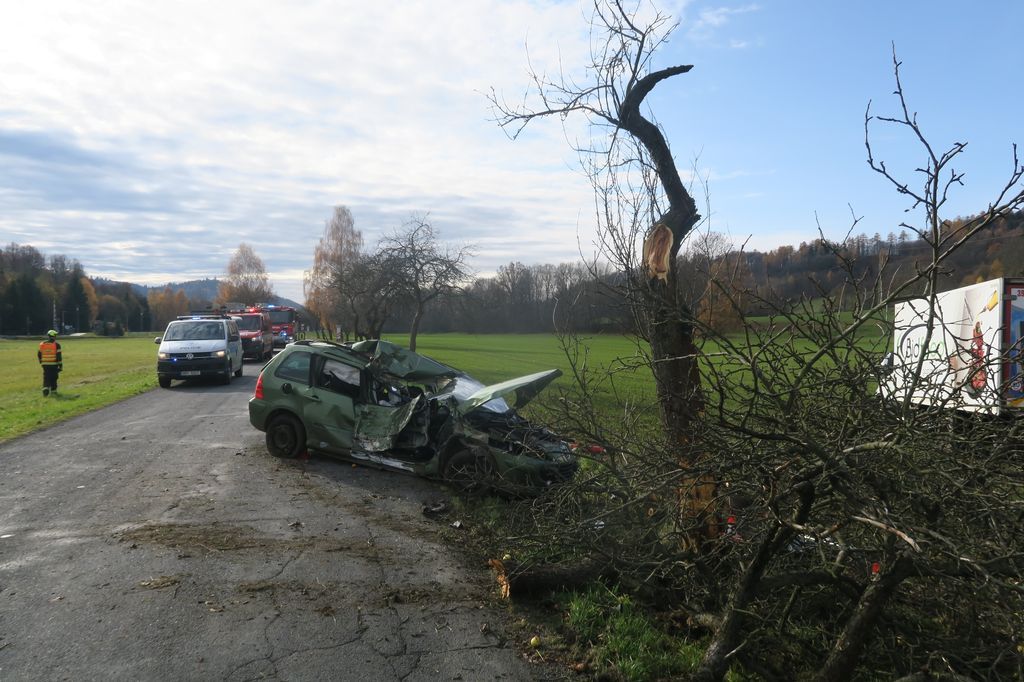 Opilý řidič na Šumpersku předjížděl náklaďák. Jeho jízdu ukončil náraz do stromu