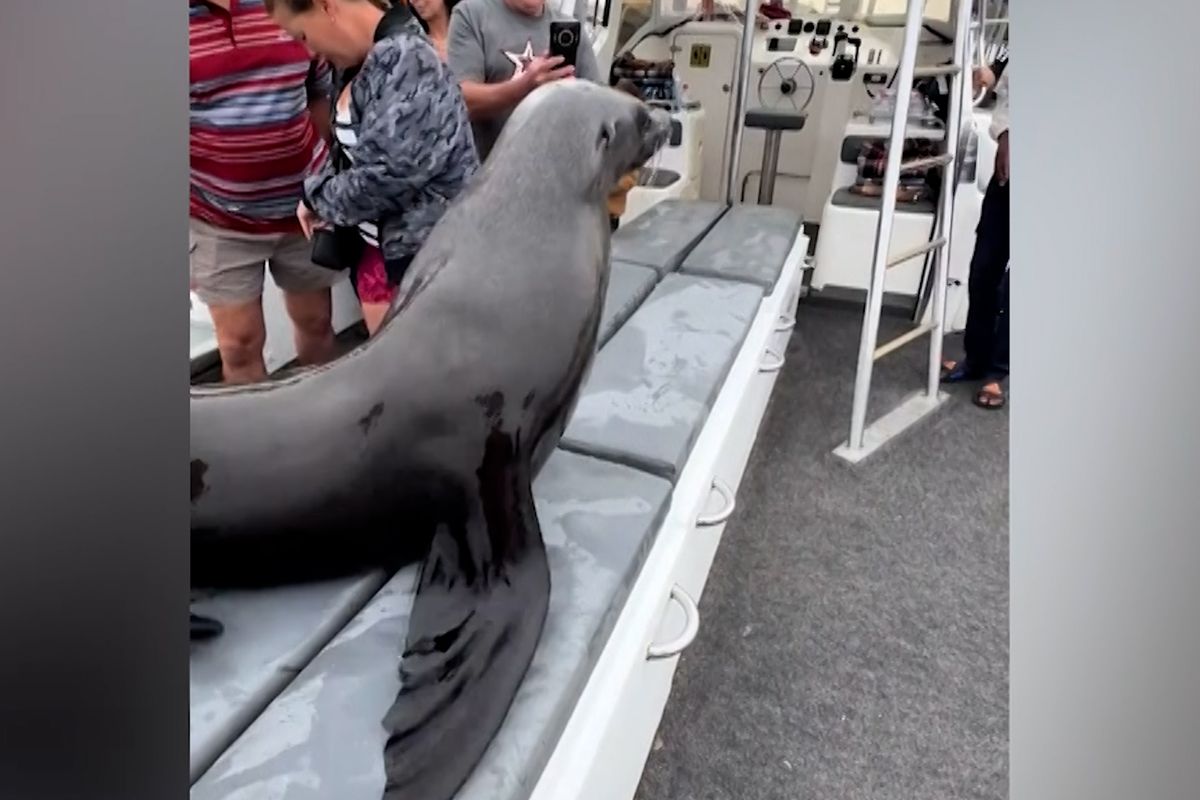 Setkání blízkého druhu. Lachtan vyskočil za turisty přímo na loď