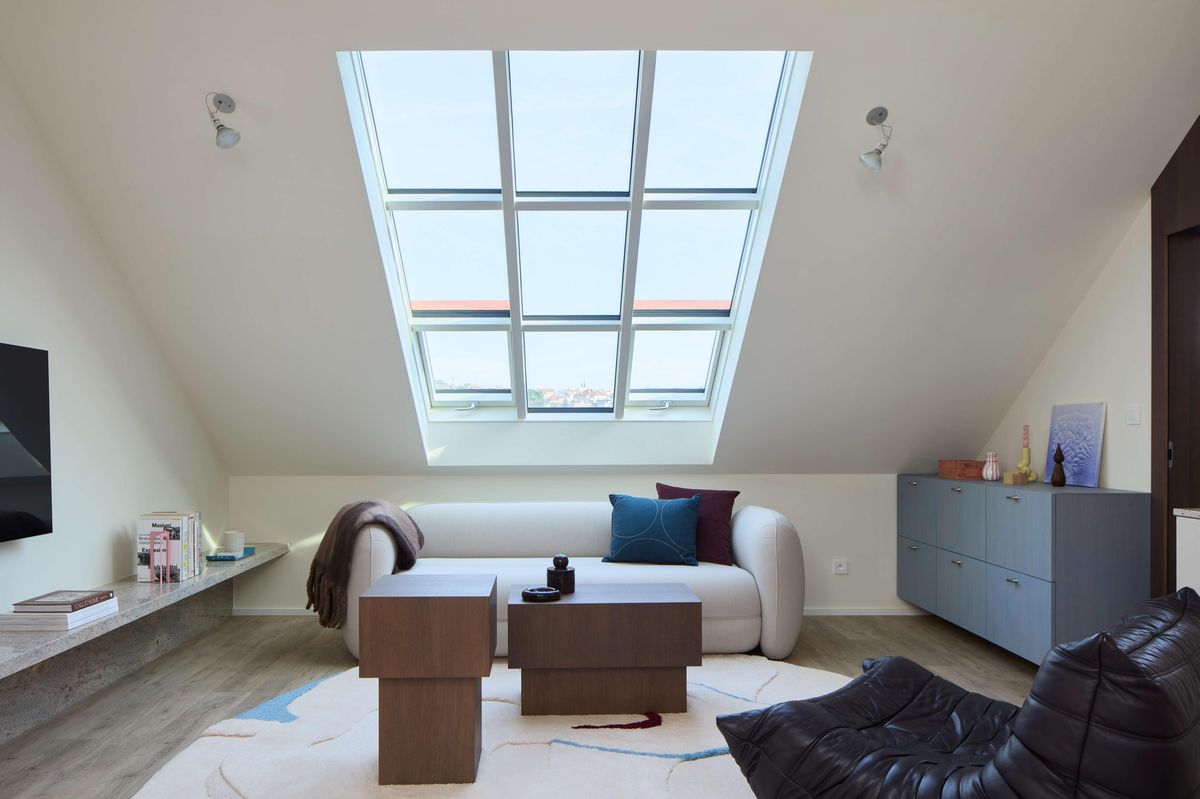 Podkrovní byt se odkrývá obloze a otvírá výhled na město