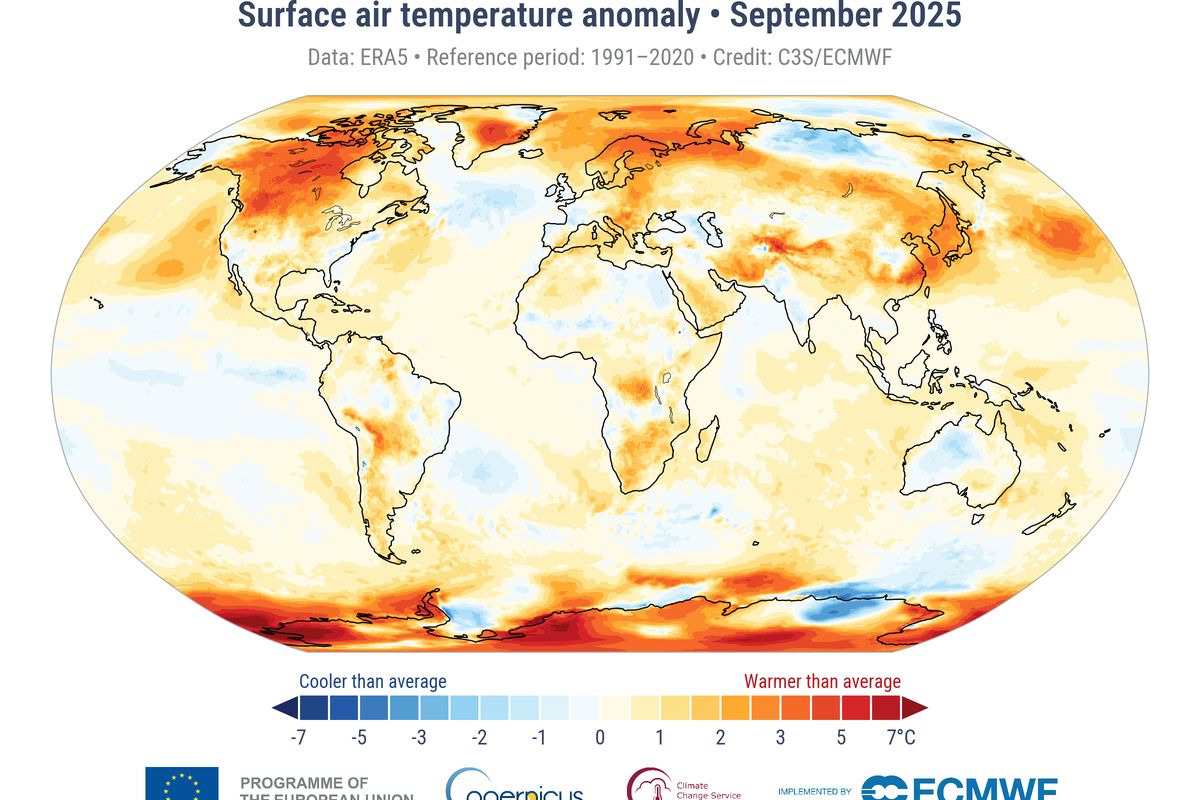 Letošní září bylo celosvětově nejteplejší v historii měření, k teplotnímu rekordu směřuje i celý letošní rok. V tiskové zprávě to uvádí program Evropské unie...