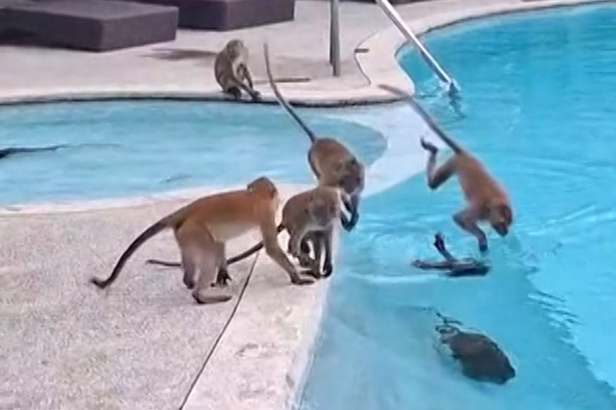 Bazén v thajském hotelu obsadila opičí tlupa, turisté se raději klidili pryč
