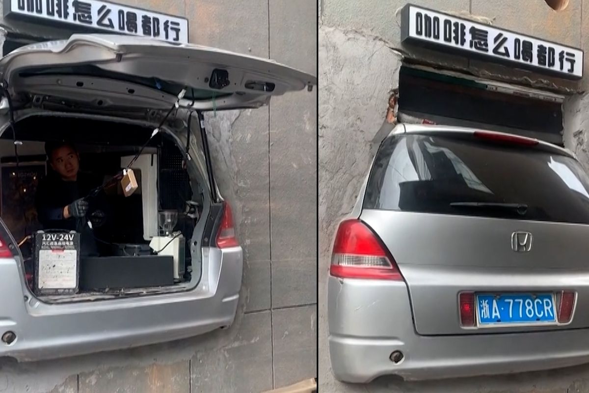 Číňan nechal zazdít zadní část auta a prodává z něj kávu